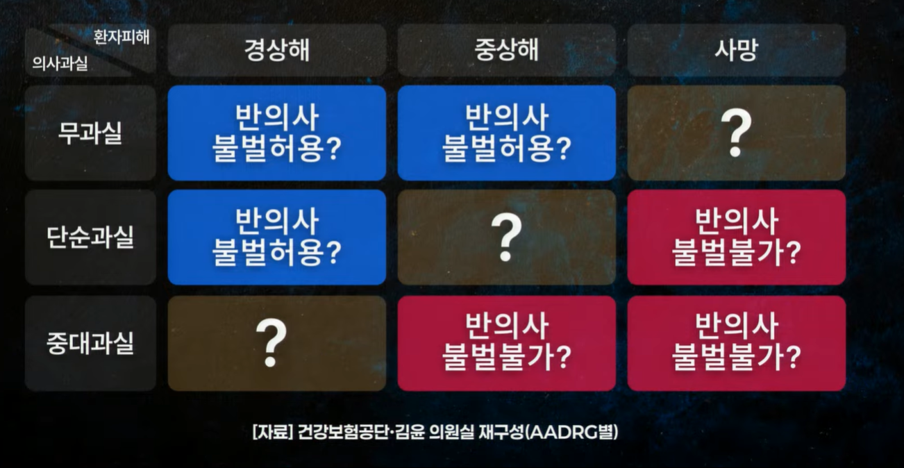 김 의원은 환자가 입은 피해 정도 의료진의 과실의 정도를 기준으로 9단계로 나눠 특례를 적용할 것을 제안했다.