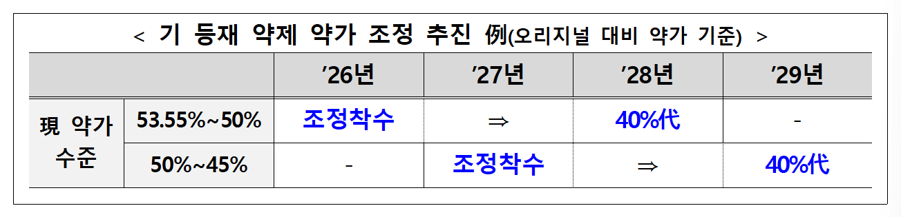 약제별 등재 시점 및 현재 약가 수준 종합 고려…2026년 시작