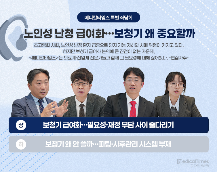 메디칼타임즈는 28일 '난청 보청기 급여화가 왜 필요한가'를 주제로 좌담회를 열고, 노인 보청기 급여화의 당위성과 재정적 현실성과 이를 둘러싼 각계의 시각을 집중 조명했다.