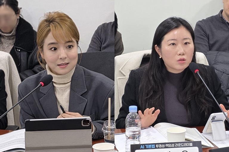 스타트업얼라이언스 정주연 선임전문위원(왼쪽)과 코리아스타트업포럼 정지은 대외정책분과위원장은 AI 기본법에 대한 업계 우려를 전했다.